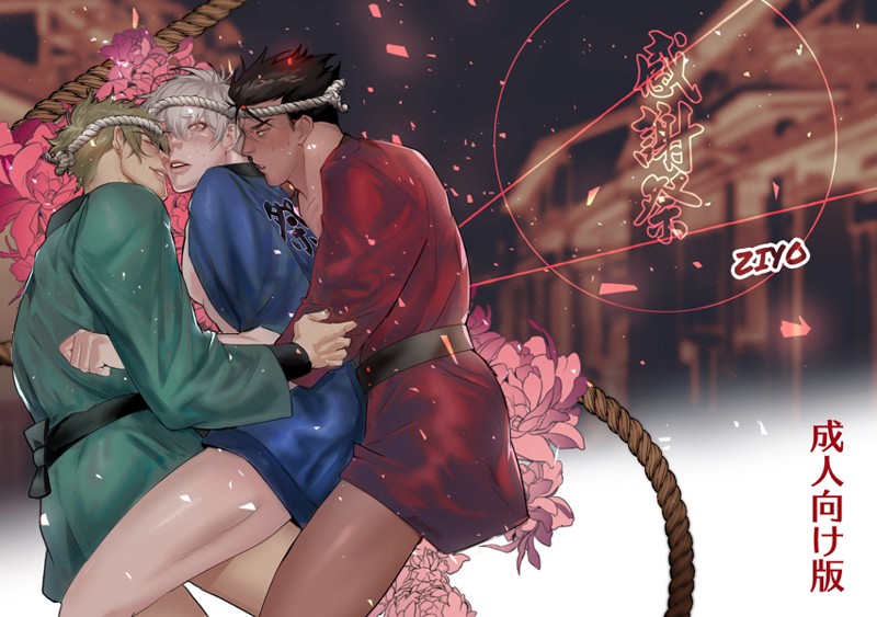 AV男優の小山、大河、中村が挑む、新作のテーマは「夏の大祭」!淫乱な身体の3人が捧げられ、飢えた参加者たちのモノを咥えこむ。欲望のままにくんずほぐれつ入り乱れ、とうとう豊穣を願って産卵プレイまで!?「みんなでもっと気持ちよくなろうよ」彼らの乳首につけられた鈴の、歓喜の音色は止まらない――。